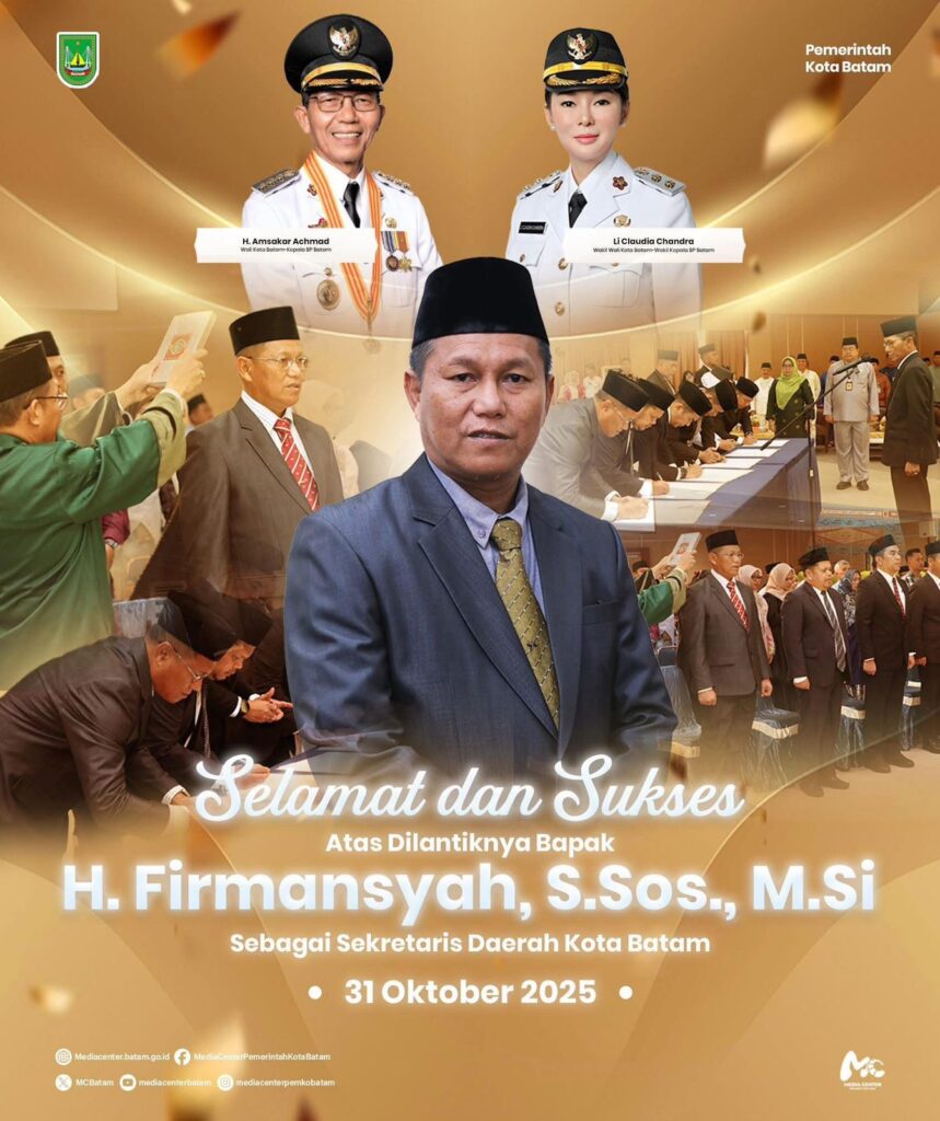 Pemerintah Kota Batam mengucapkan selamat dan sukses kepada Bapak H. Firmansyah, S.Sos., M.Si atas pelantikannya sebagai Sekretaris Daerah Kota Batam pada Jumat, 31 Oktober 2025.