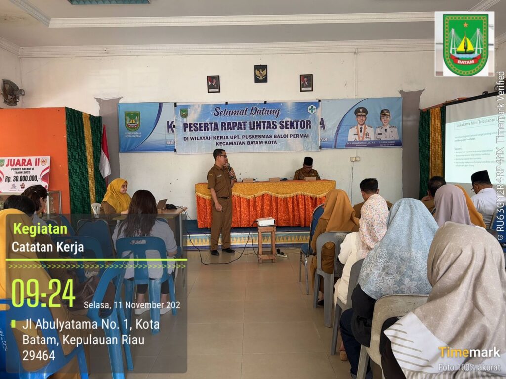 Puskesmas Baloi Permai melaksanakan Pertemuan Loka Karya Mini Lintas Sektor Bidang Kesehatan pada Selasa, 11 November 2025, bertempat di Aula Kecamatan Batam Kota.