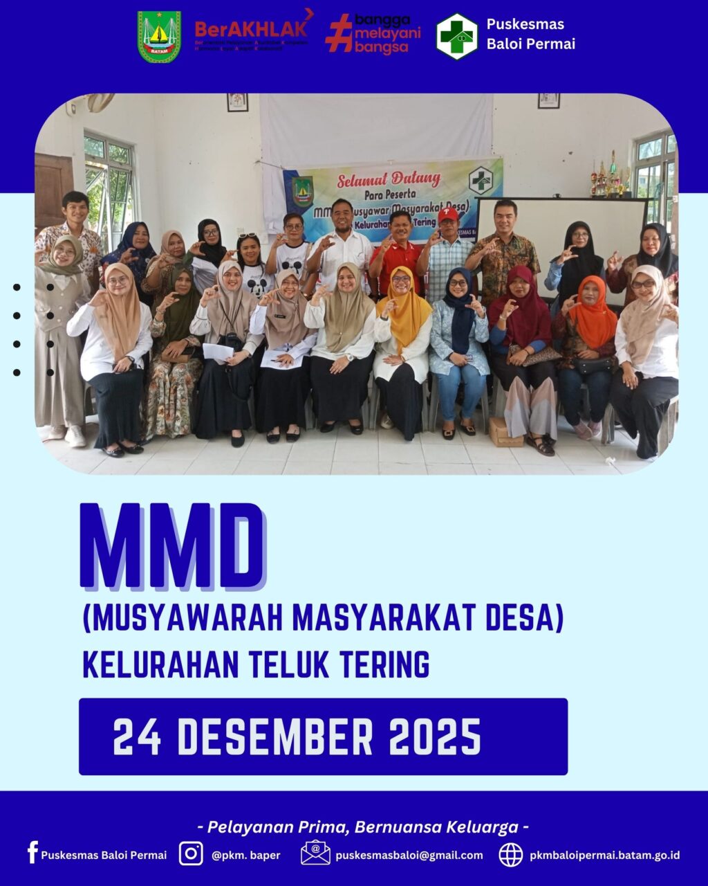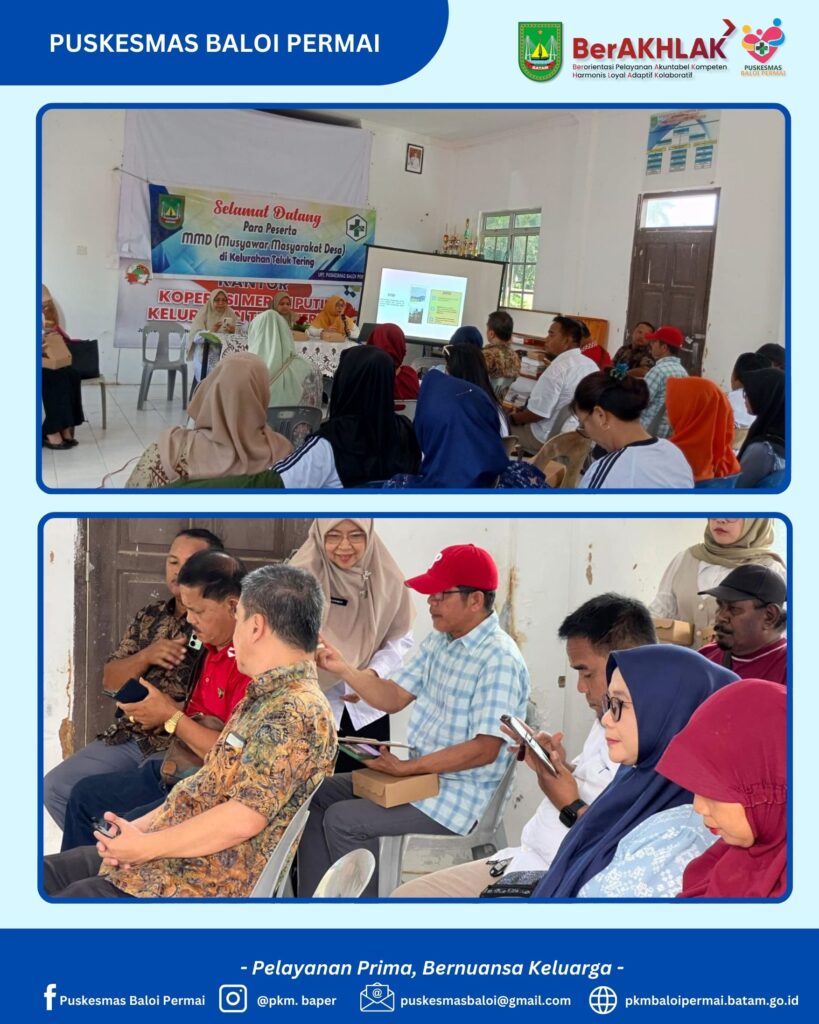 Puskesmas Baloi Permai melaksanakan kegiatan Musyawarah Masyarakat Desa (MMD) di Kelurahan Teluk Tering sebagai forum partisipatif antara masyarakat, perangkat kelurahan, kader, dan petugas kesehatan dalam mengidentifikasi permasalahan kesehatan serta menyusun rencana tindak lanjut yang tepat.