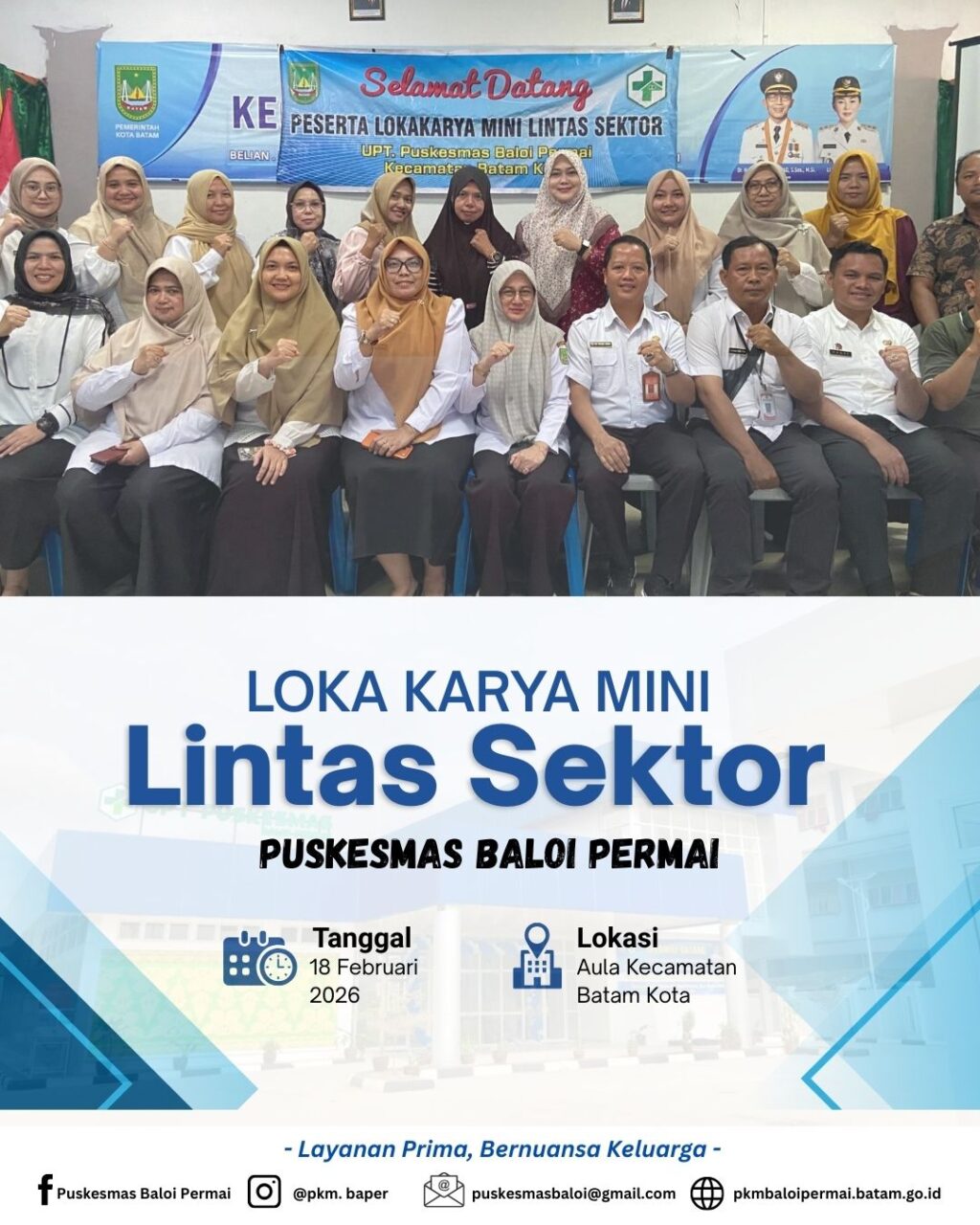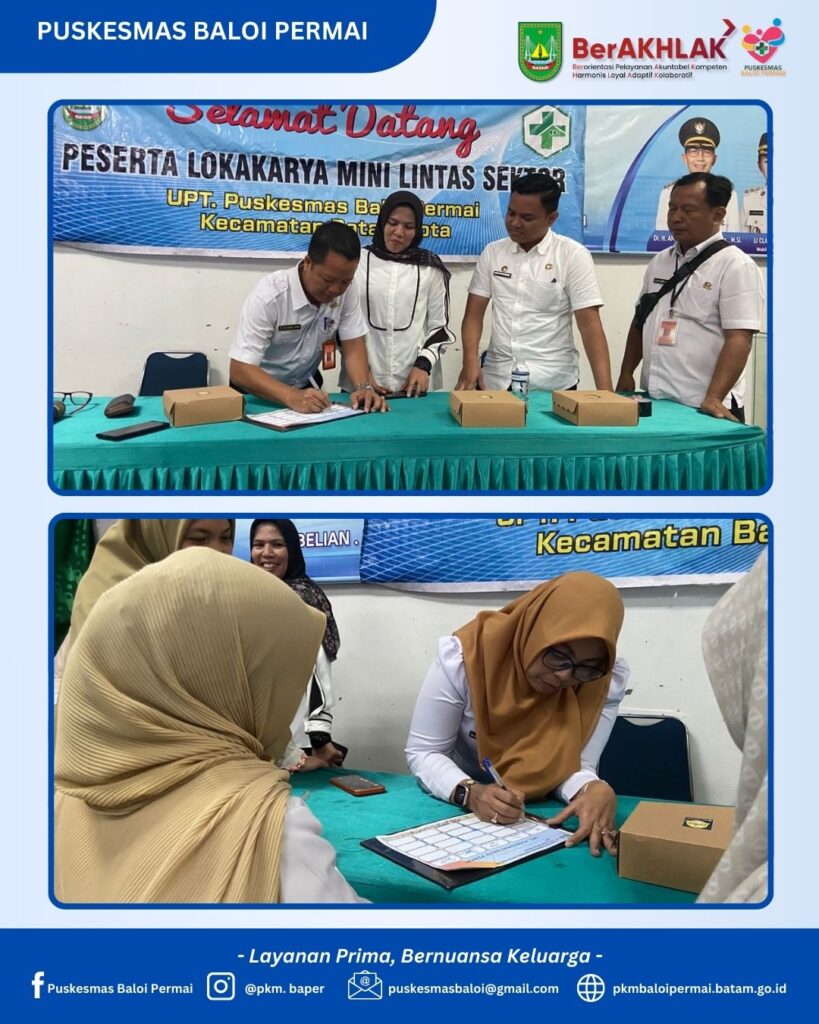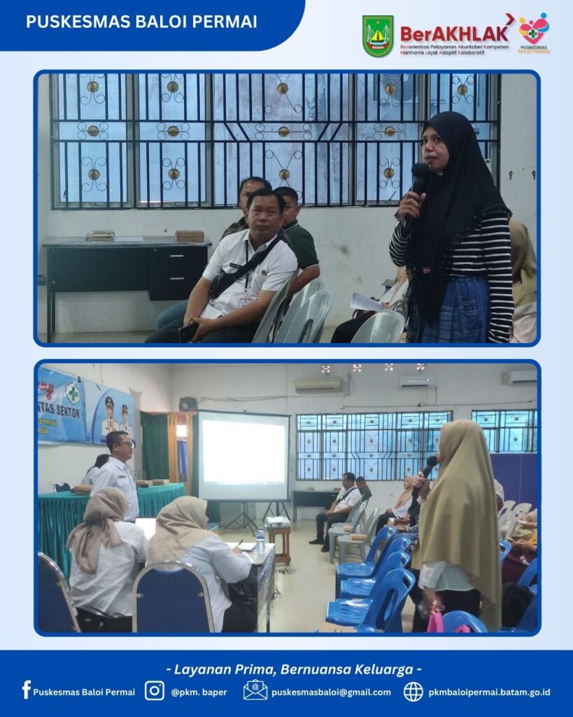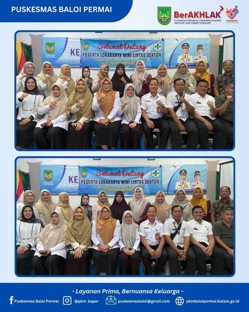 Puskesmas Baloi Permai bersama Kecamatan Batam Kota menyelenggarakan kegiatan Lokakarya Mini Tribulanan Lintas Sektor pada hari Rabu, 18 Februari 2026. Kegiatan ini merupakan forum koordinasi rutin yang bertujuan memperkuat sinergi lintas sektor dalam mendukung peningkatan derajat kesehatan masyarakat serta optimalisasi pelayanan kesehatan di wilayah kerja Puskesmas Baloi Permai.